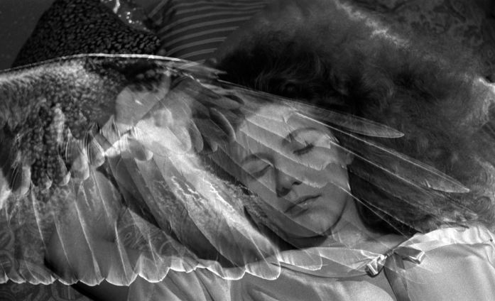 Mais surtout, la scène ci-dessous se déroule au cours d’un rêve dans lequel Damiel apparaît à la trapéziste et montre par la simple superposition de l’image, la rencontre des deux mondes. Le choix du rêve comme premier lieu de rencontre n’est pas original, mais particulièrement parlant puisque le monde du songe représente parfaitement cette eau trouble, cet entredeux états conscient/inconscient, réel/irréel, divin/humain, corporel/spirituel…